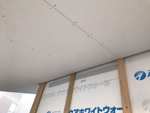 さて、軒天の奥をあえて打たなかった言い訳とは それは頂いたコメントにあるように、勾配により釘打ち機が面材に対して直角に打てず斜め打ちになってしまうつまり釘頭の半分がめり込み、もう半分が浮いてしまう事がある そのままって訳にはいかず釘を〆る必…